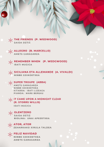 ZEHARKAKO XIRULA ENTZUNALDIA berakoeskola202/12/202509/12/2025 Albisteak Abenduaren 11an, arratsaldeko 18:00etan, burutuko da Musika Eskolako Areto Nagusian ZERHARKAKO XIRULAREN ENTZUNALDIA.